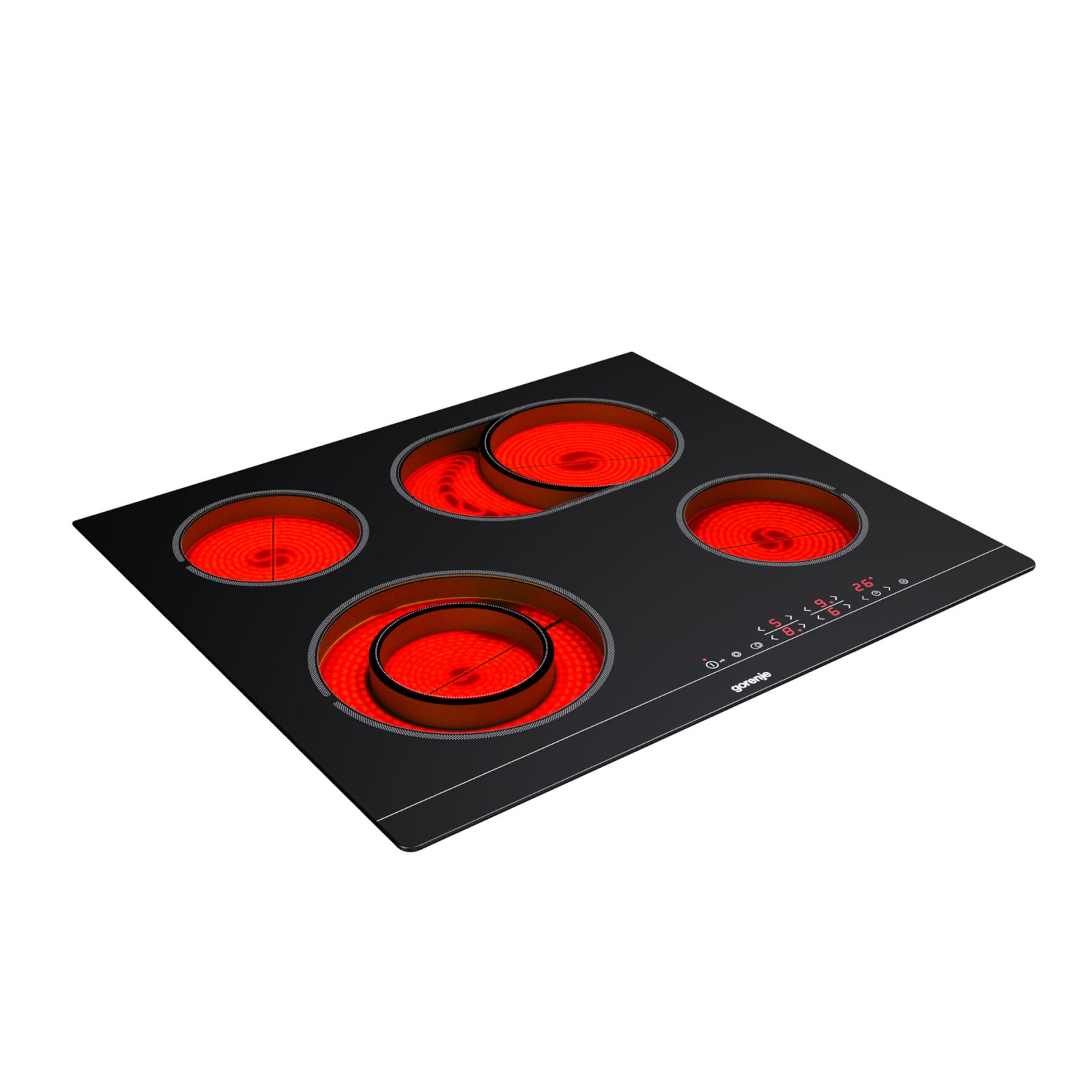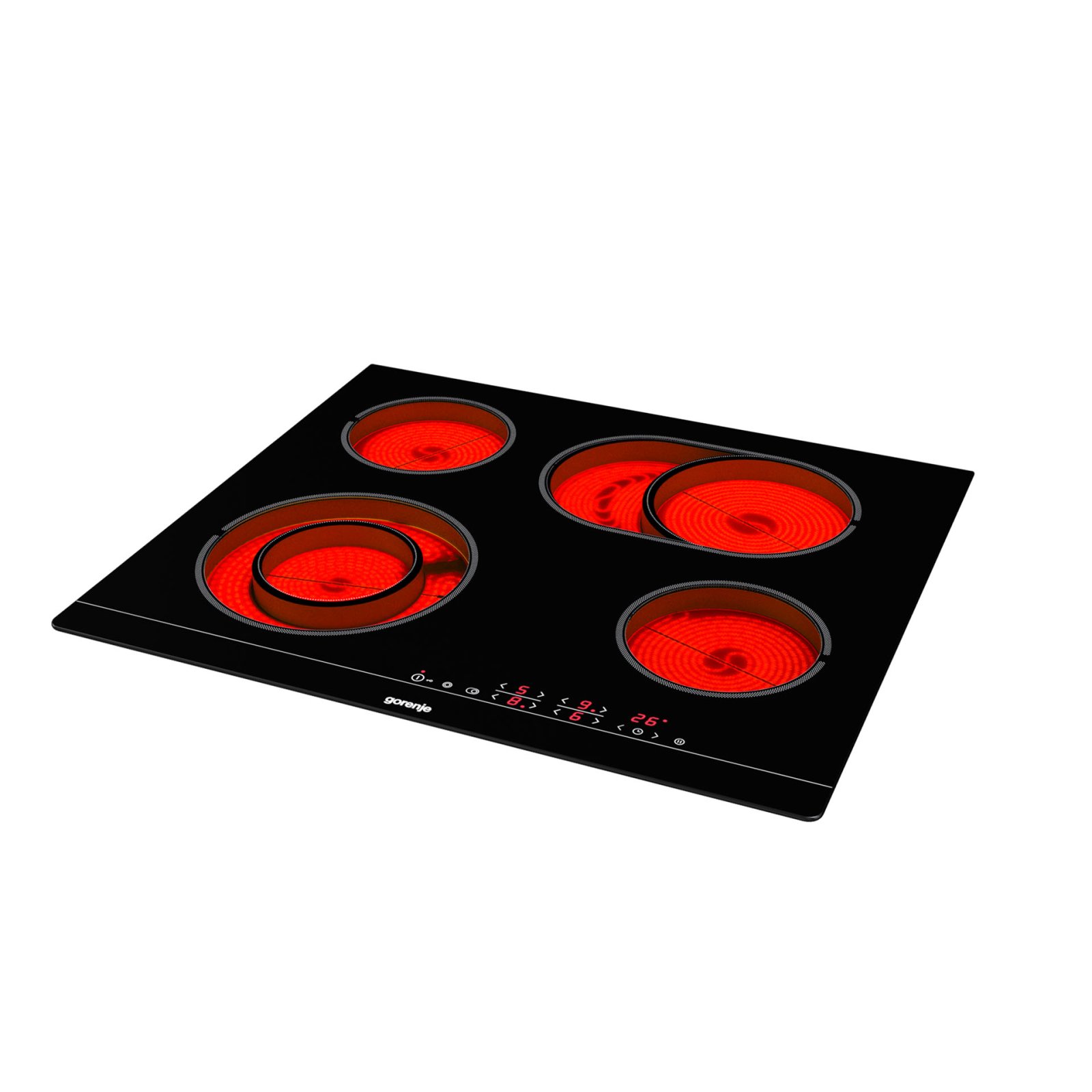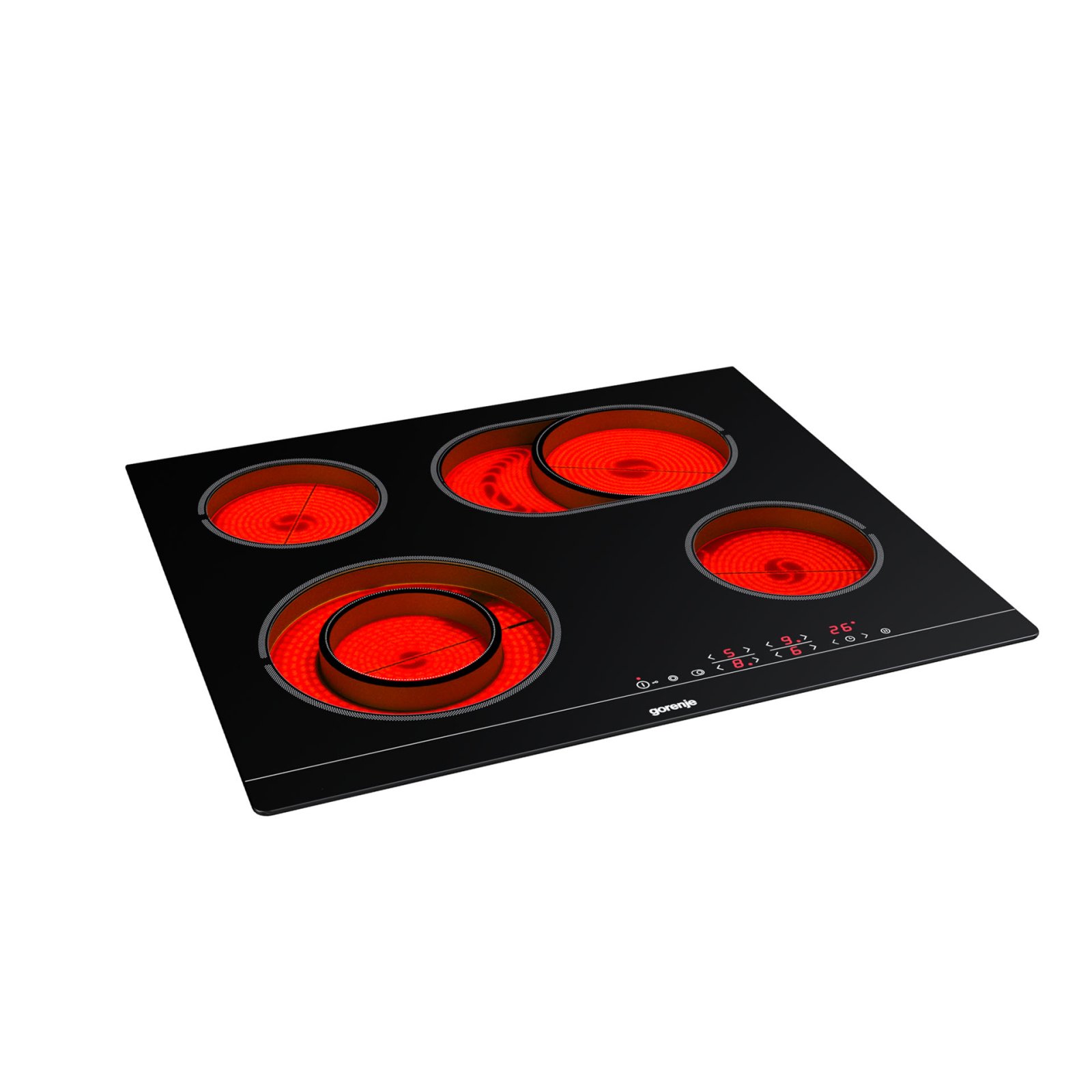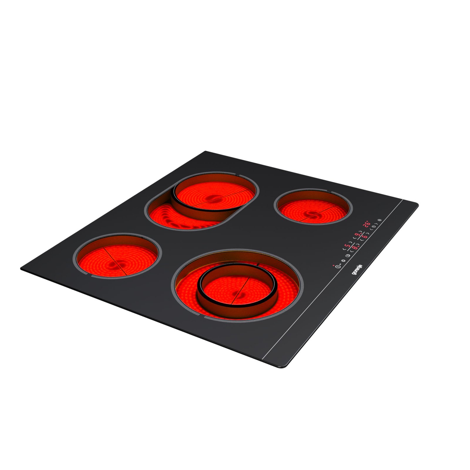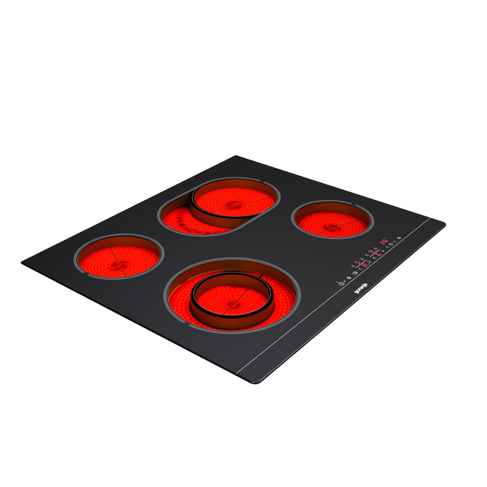 4 HiLight heating zonesLeft front: Ø two ring 12/21 cm, 0.8/2.2 kW,Right front: Ø 14.5 cm, 1.2 kW,Left rear: Ø 14.5 cm, 1.2 kW,Right rear: Ø 17×26.5 cm, 1.5/2.4 kW