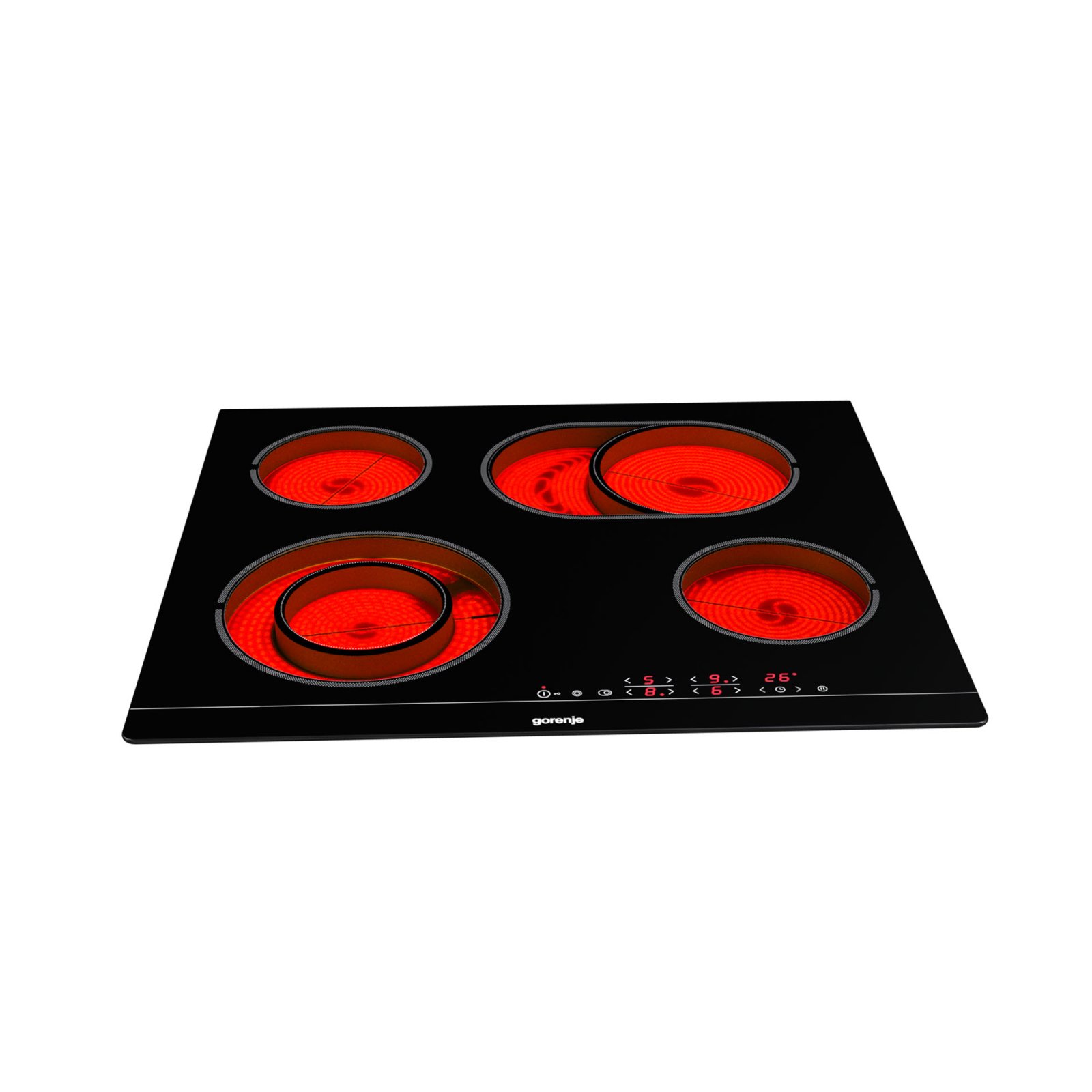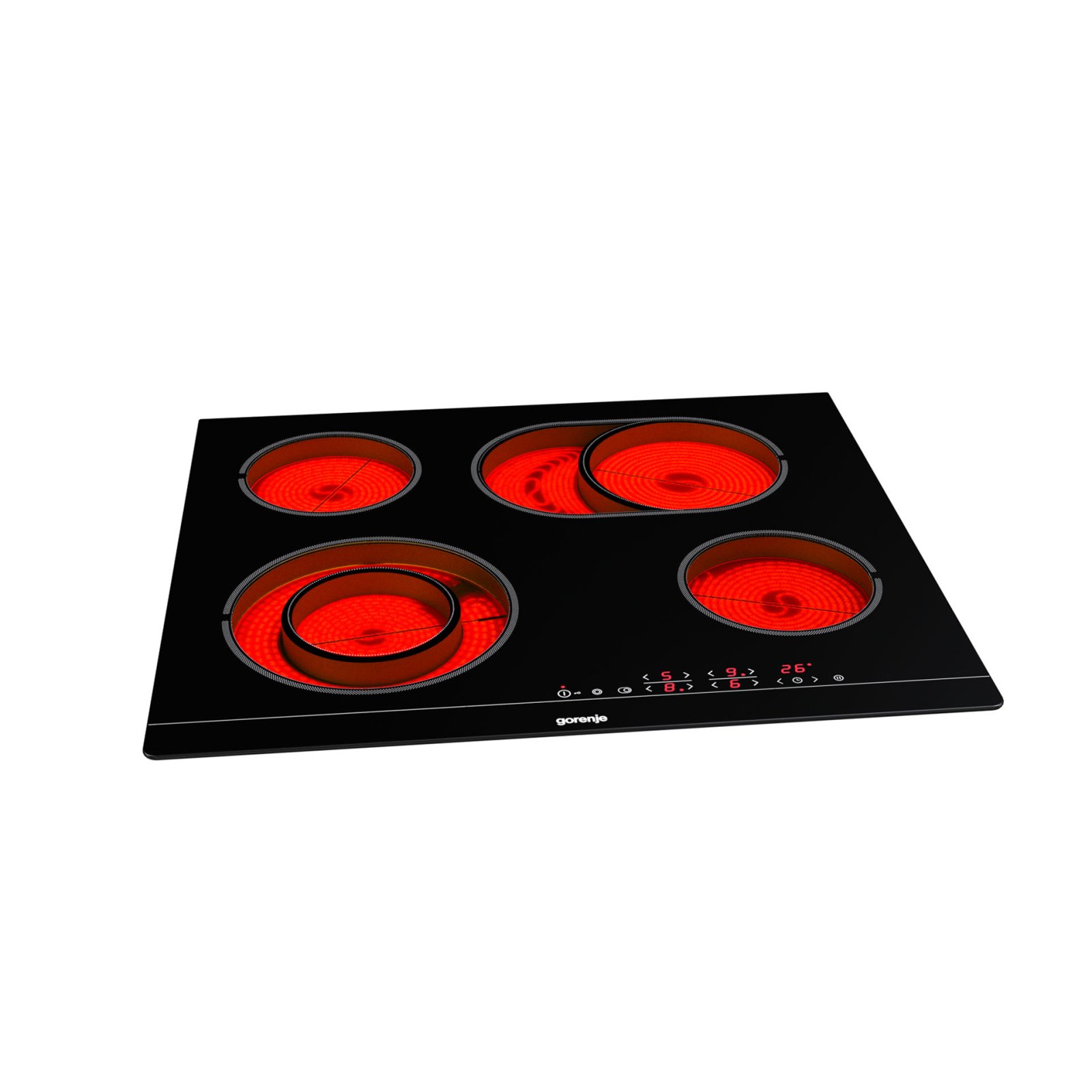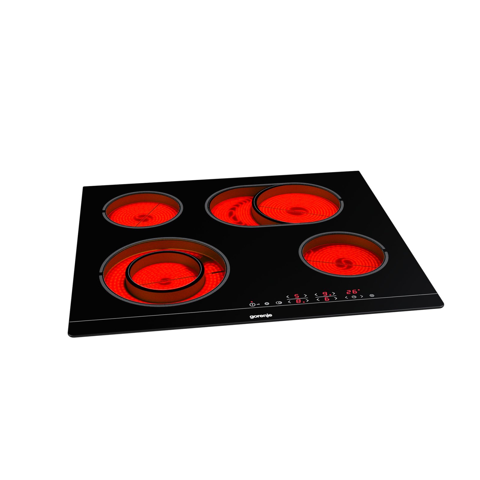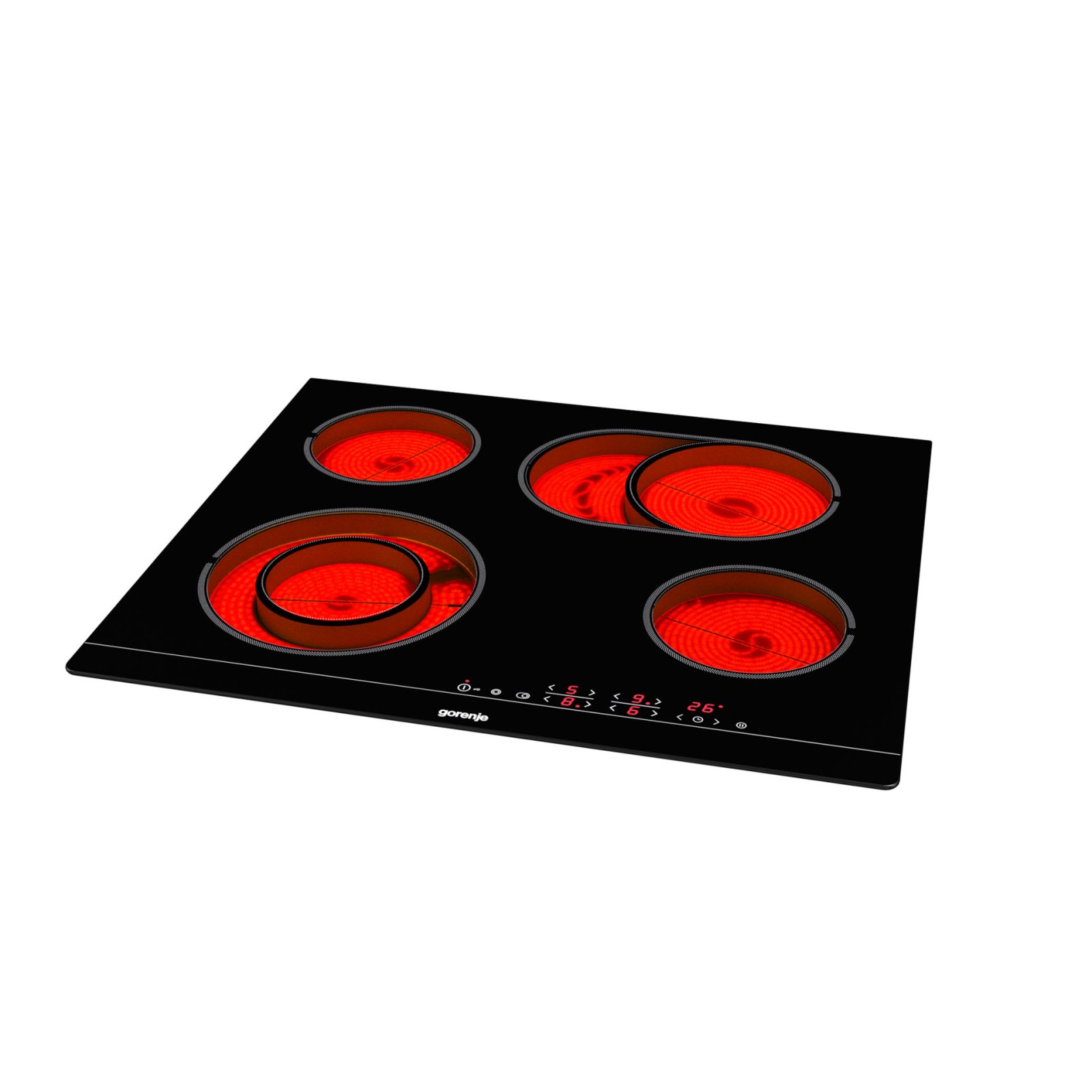 4 HiLight heating zonesLeft front: Ø two ring 12/21 cm, 0.8/2.2 kW,Right front: Ø 14.5 cm, 1.2 kW,Left rear: Ø 14.5 cm, 1.2 kW,Right rear: Ø 17×26.5 cm, 1.5/2.4 kW