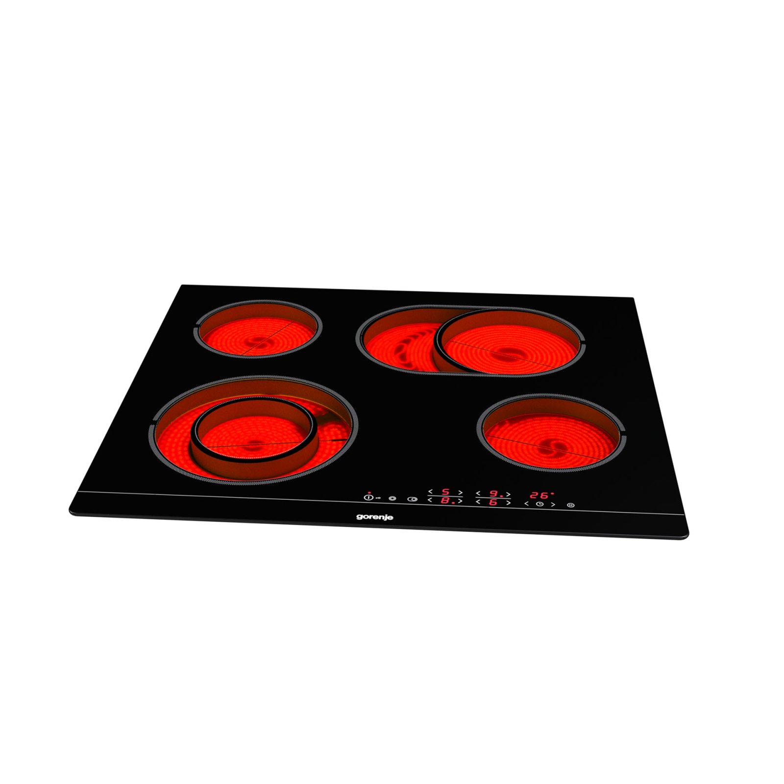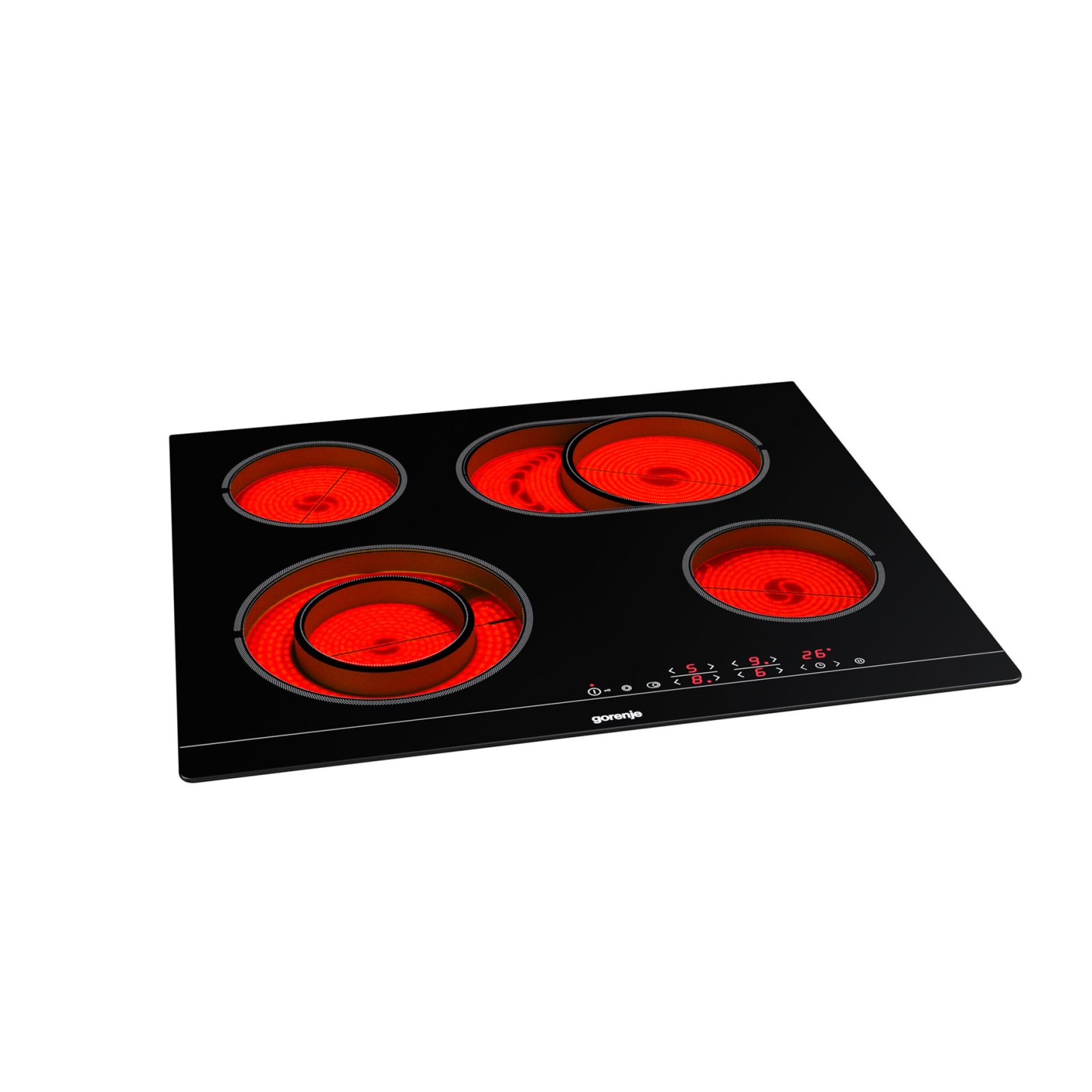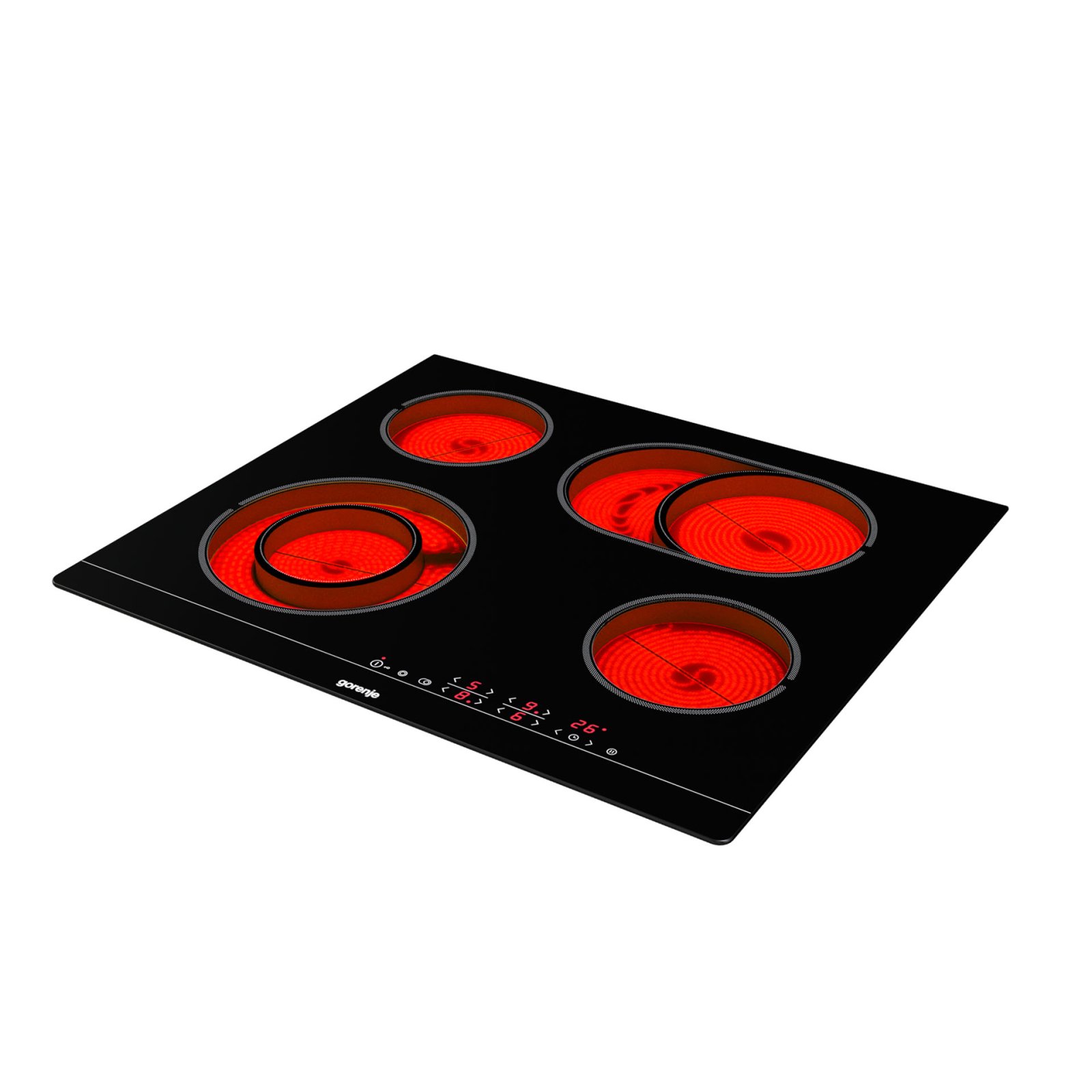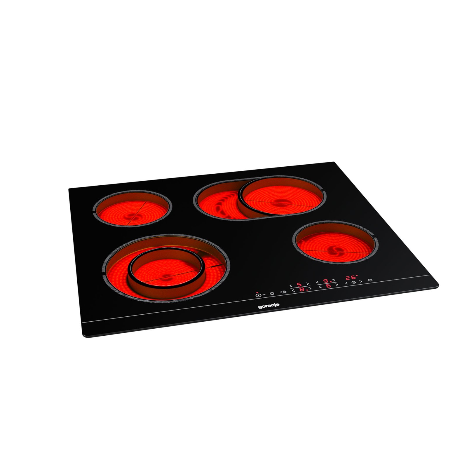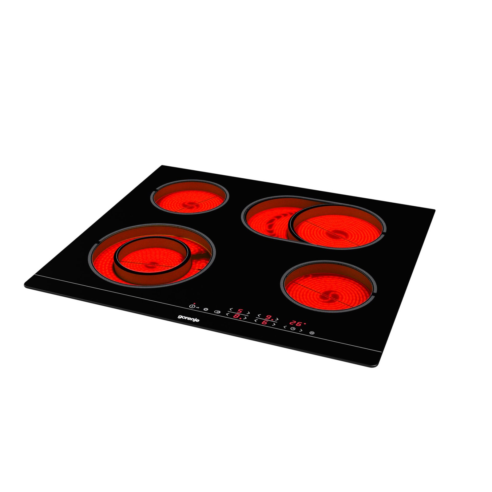 4 HiLight heating zonesLeft front: Ø two ring 12/21 cm, 0.8/2.2 kW,Right front: Ø 14.5 cm, 1.2 kW,Left rear: Ø 14.5 cm, 1.2 kW,Right rear: Ø 17×26.5 cm, 1.5/2.4 kW