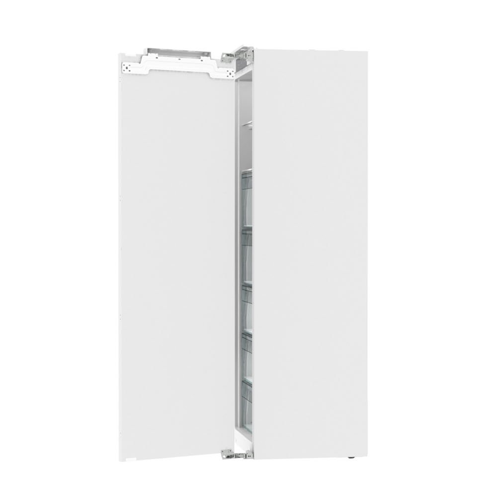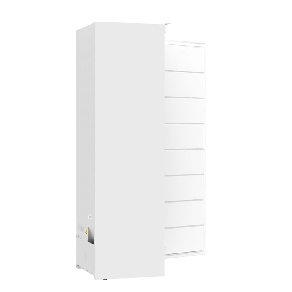 The heavy-duty hinge allows storing heavier items in the door bins, as well as opening the door to an angle of 115° with the full access to the drawers. This allows a clearer look of the interior and makes loading the fridge and taking the food from it more convenient as the door won't keep closing. If the door is left slightly opened, the hinge will close them automatically.